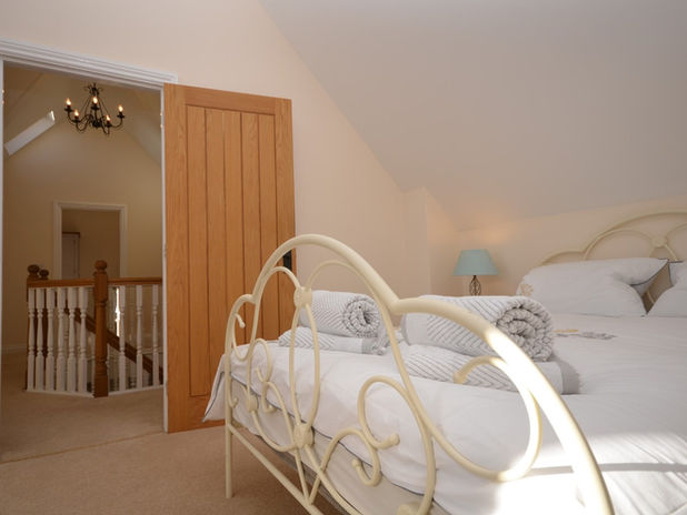 The master suite with en-suite bathroom comprising bath, separate shower and WC its own TV/DVD, and French windows leading out to a private balcony has breath-taking views across the countryside.